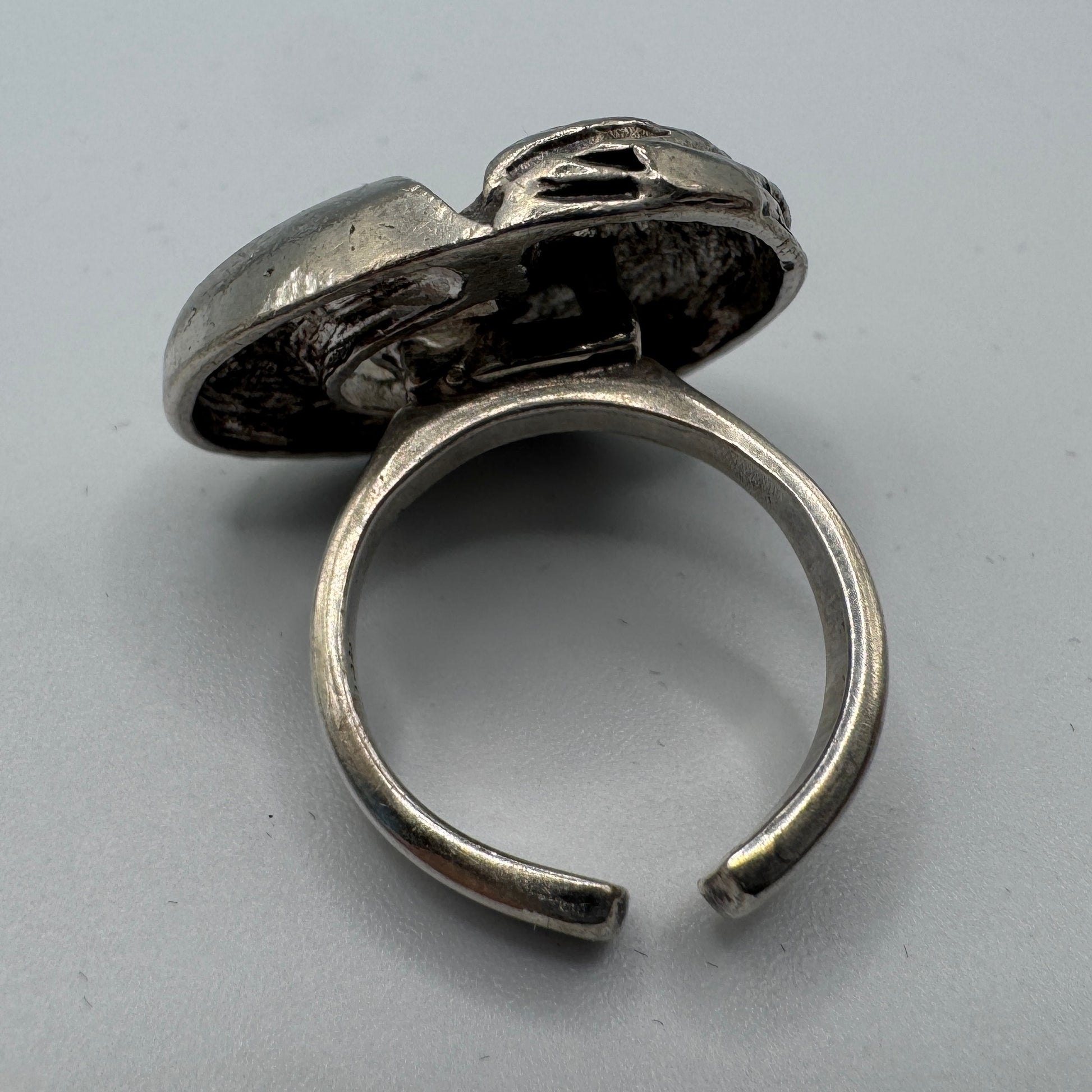 La monture est ajustable, permettant de s'adapter à plusieurs tailles de doigt tout en restant confortable et équilibrée. Un bijou à forte présence, idéal pour celles et ceux qui aiment les pièces d'expression.