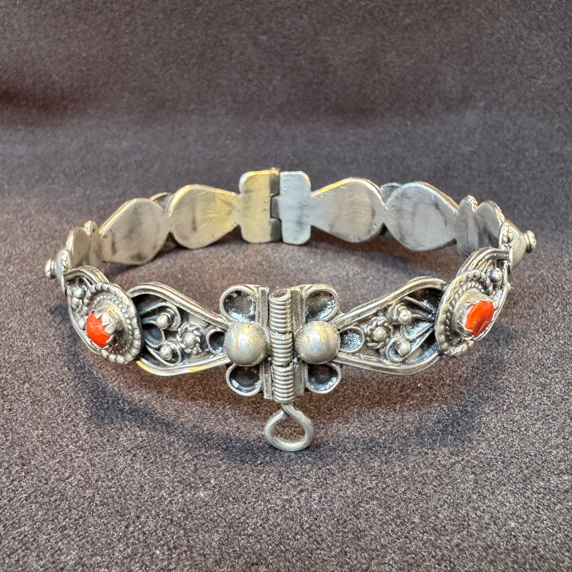 Bracelet Berbère ancien- Filigrane et cabochons de corail rouge