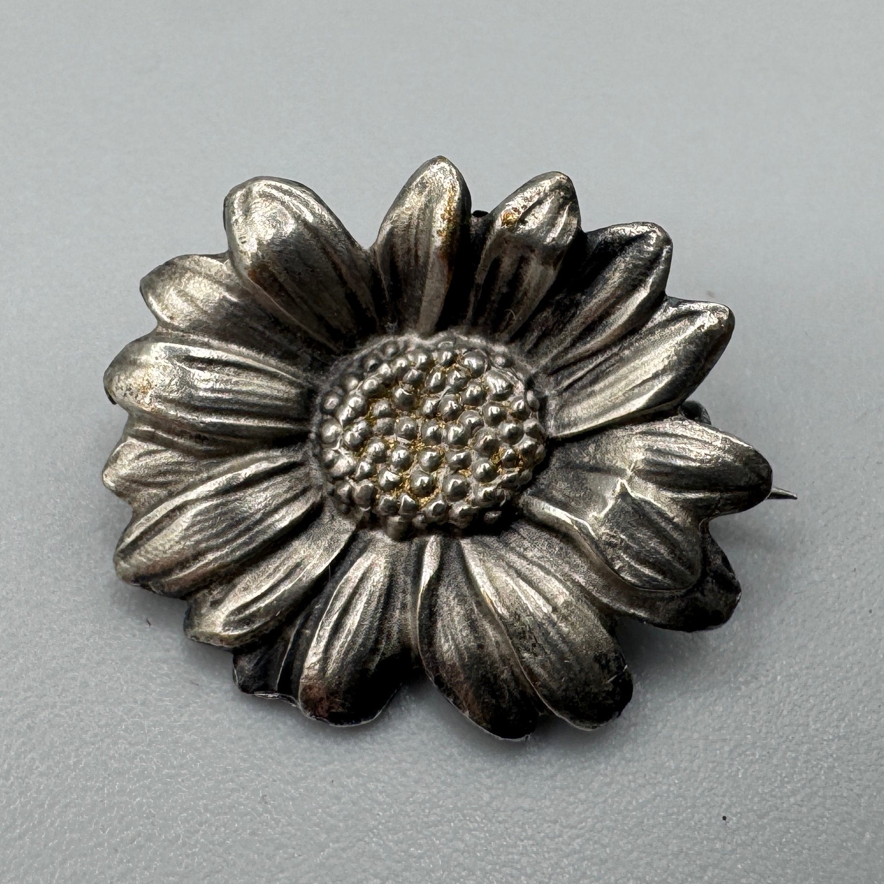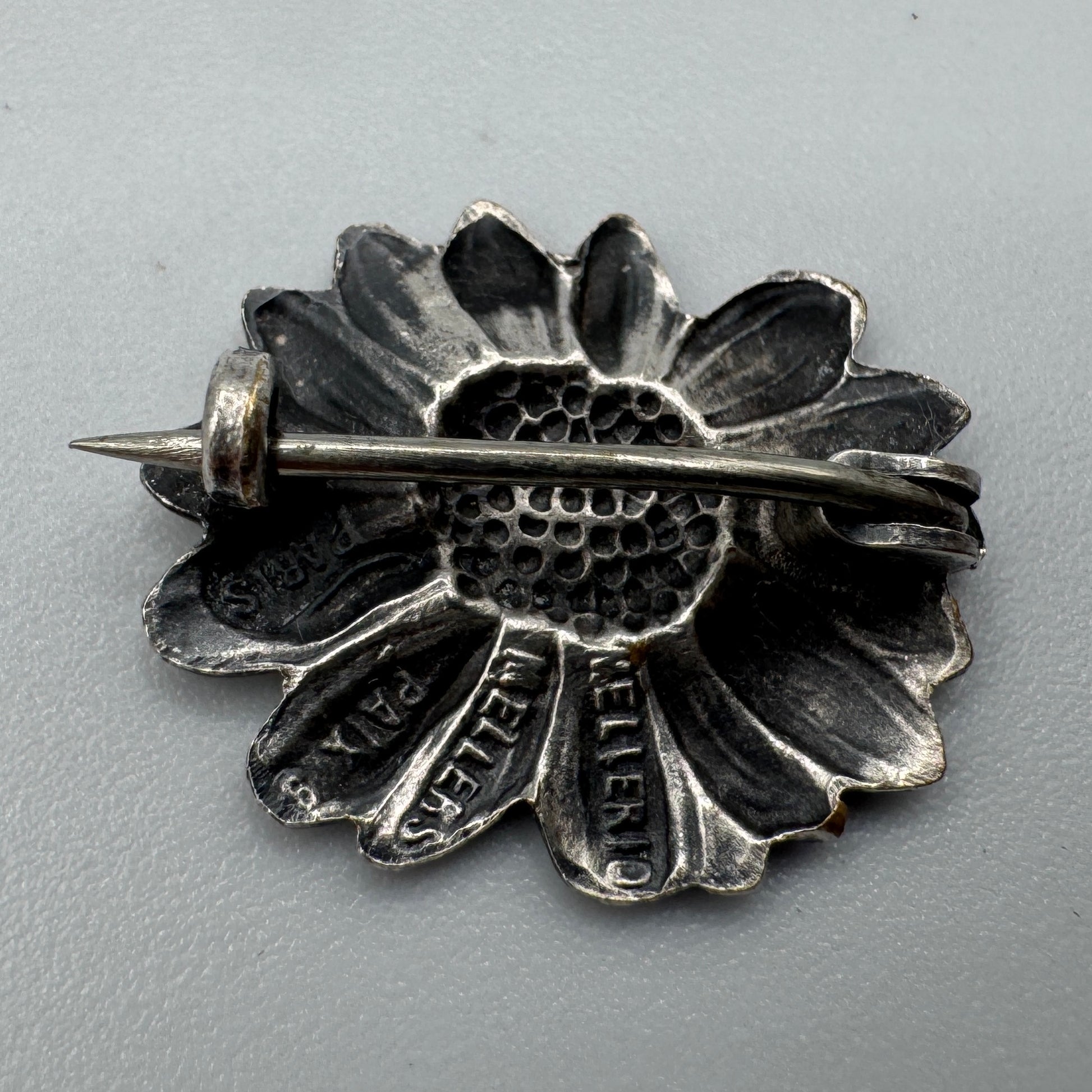 Petite Broche Ancienne Mellerio « Marguerite » - Métal Argenté