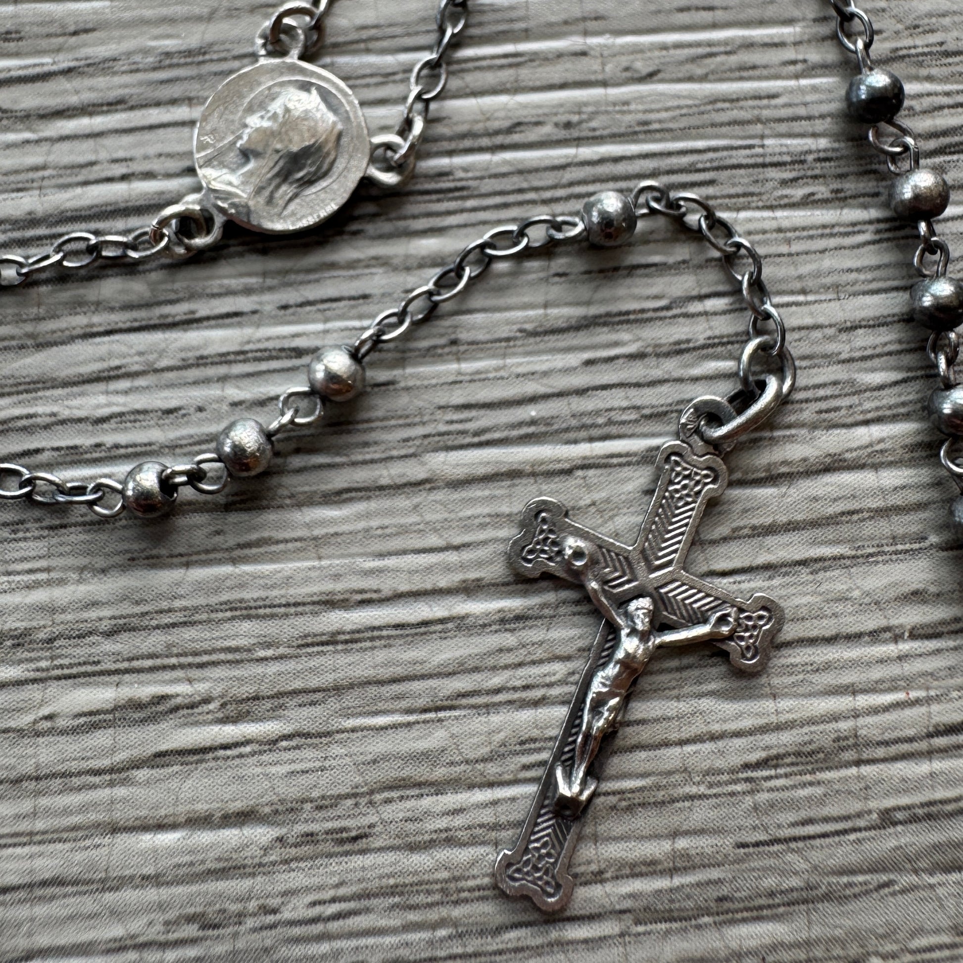 Le chapelet est un objet de prière catholique qui remonte au moyen âge, popularisé notamment par Saint Dominique et l'ordre des Dominicains au XIIIe siècle. Il est utilisé pour réciter des prières répétitives comme le " je vous salue Marie", tout en méditant sur des évènements de la vie du Christ et de la Sainte vierge.