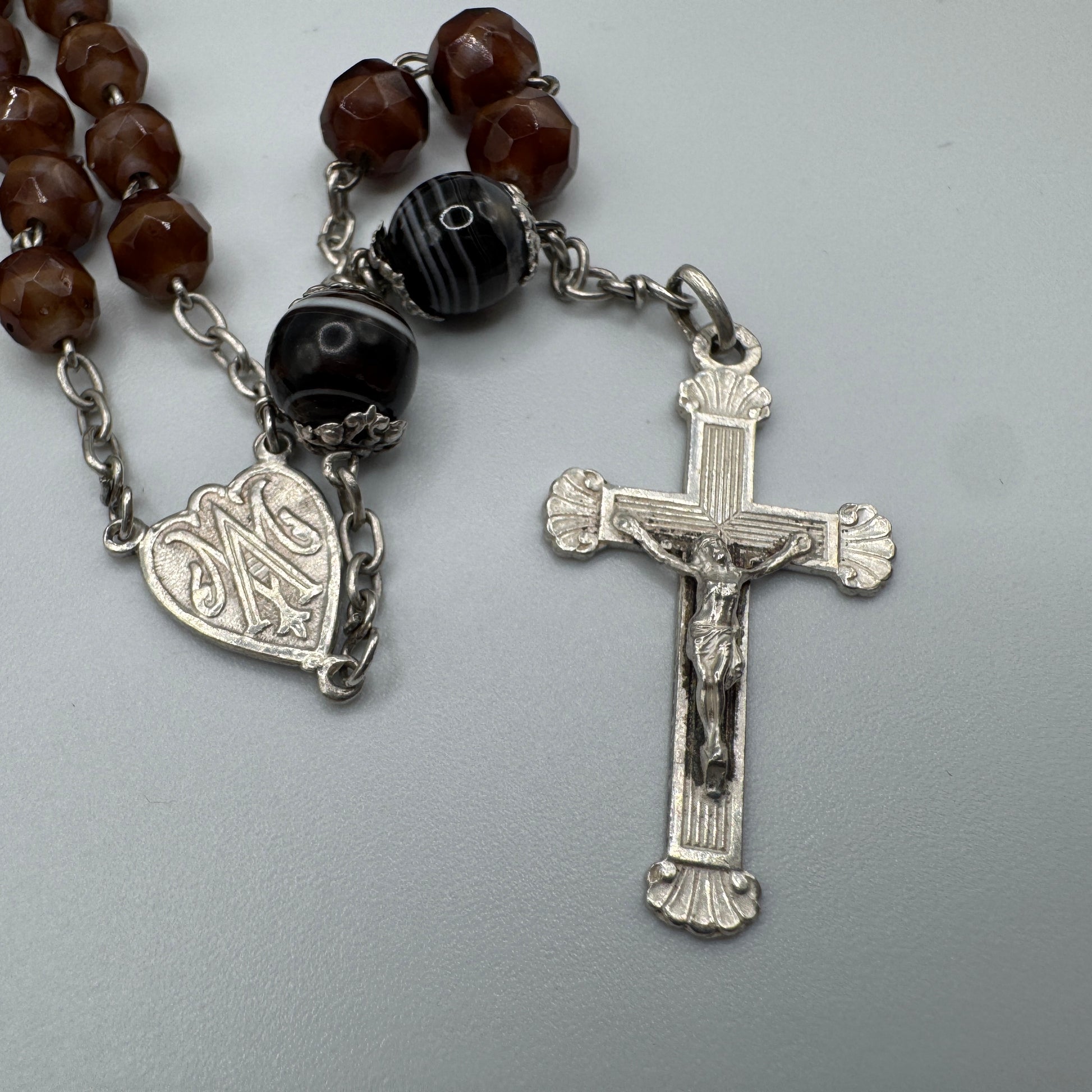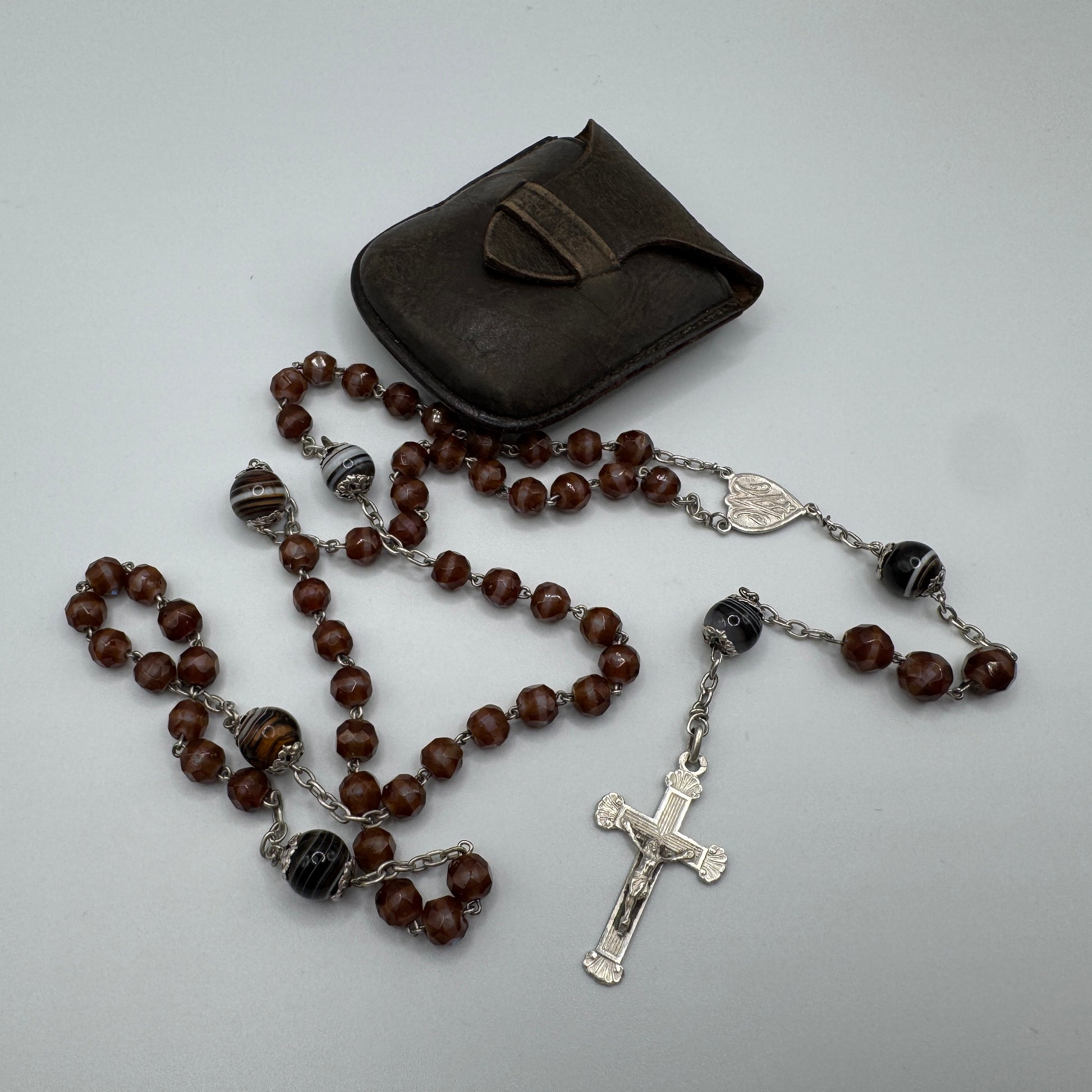 Rare Chapelet ancien XIXe en argent et perles pâte de verre