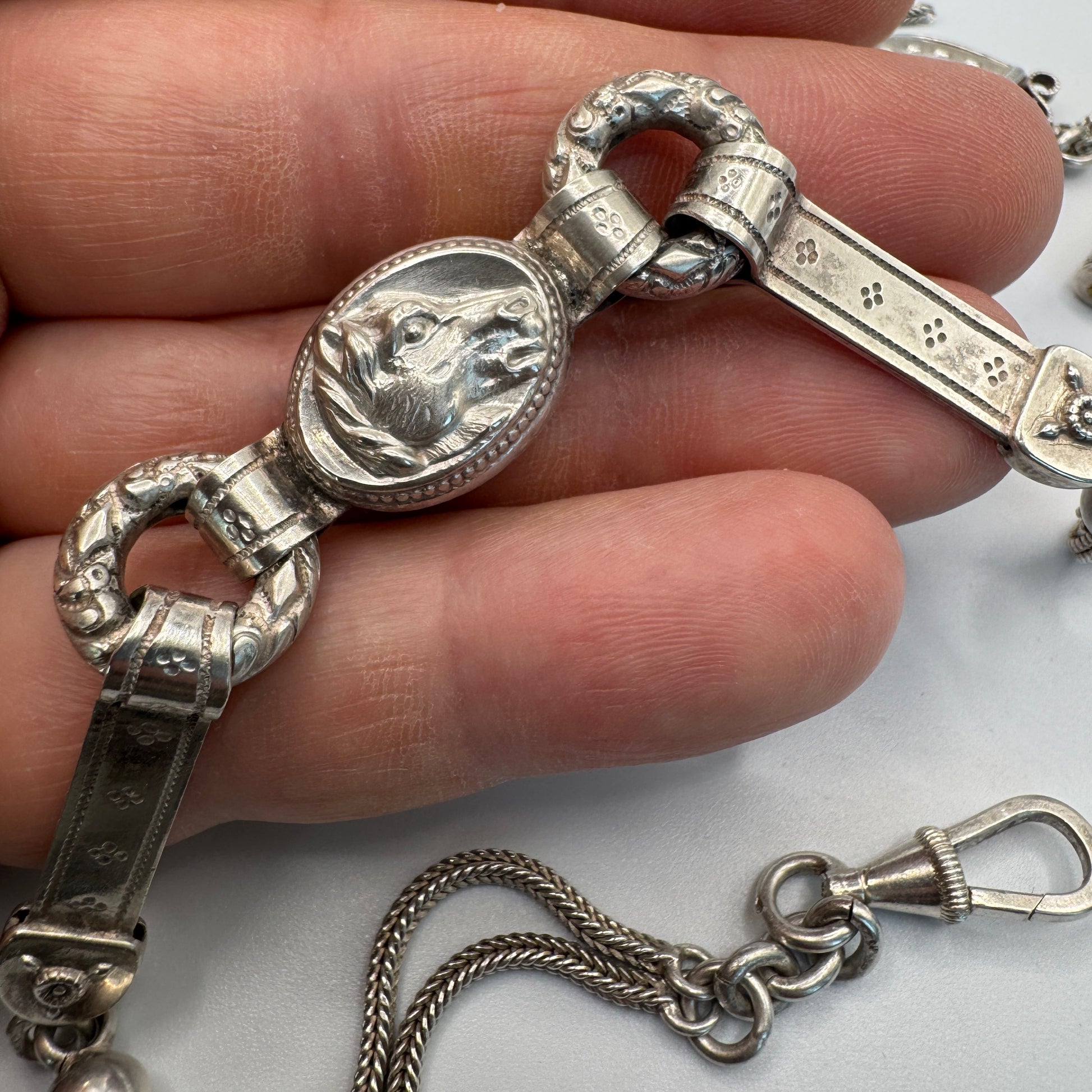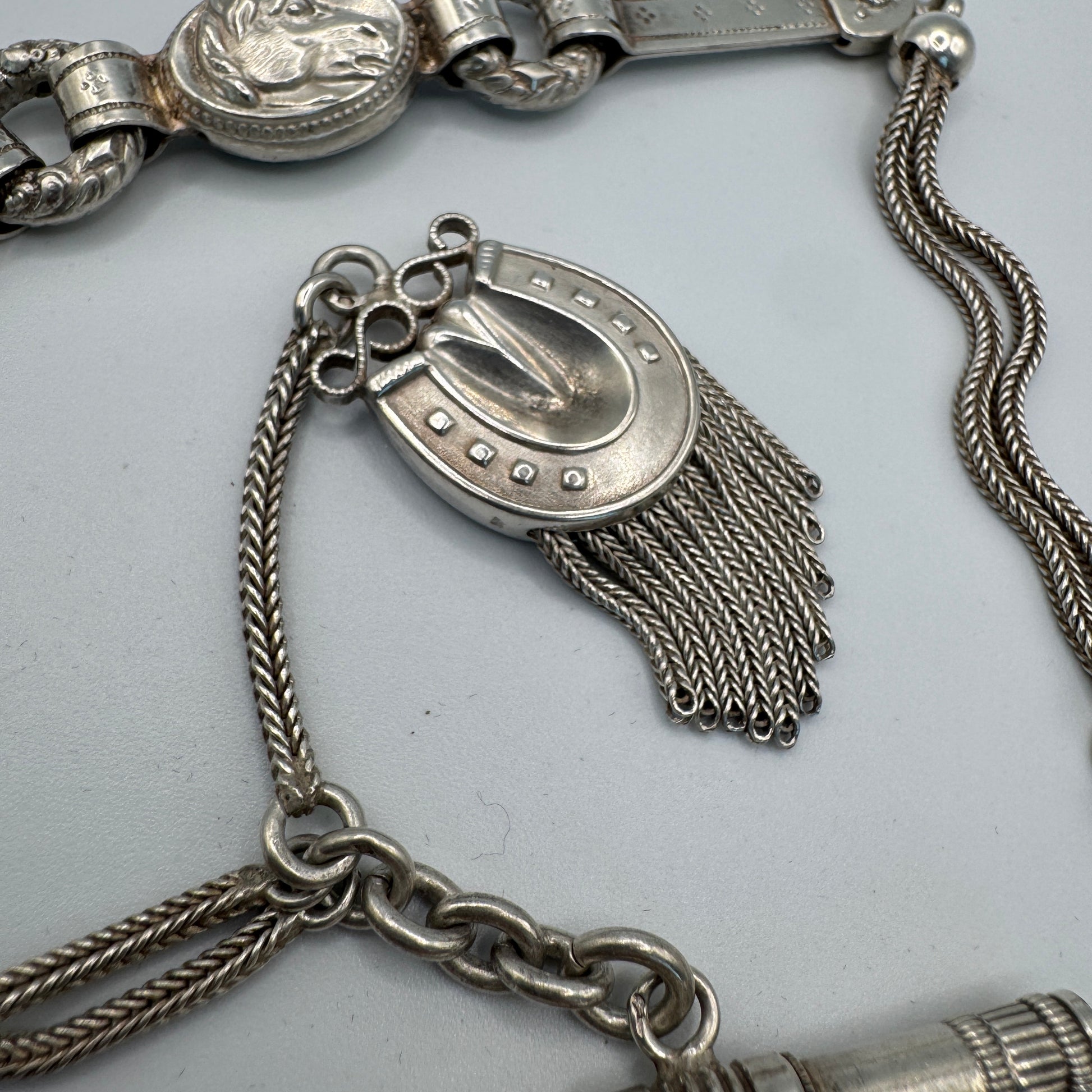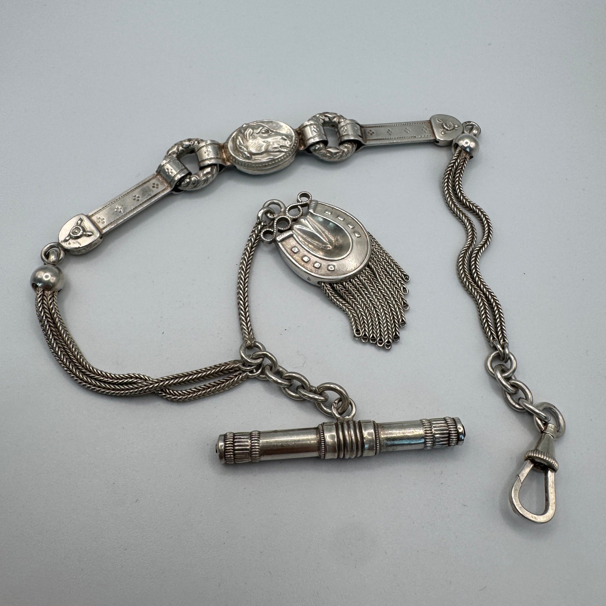 Châtelaine de montre à gousset XIXeme « thème équestre » - argent massif