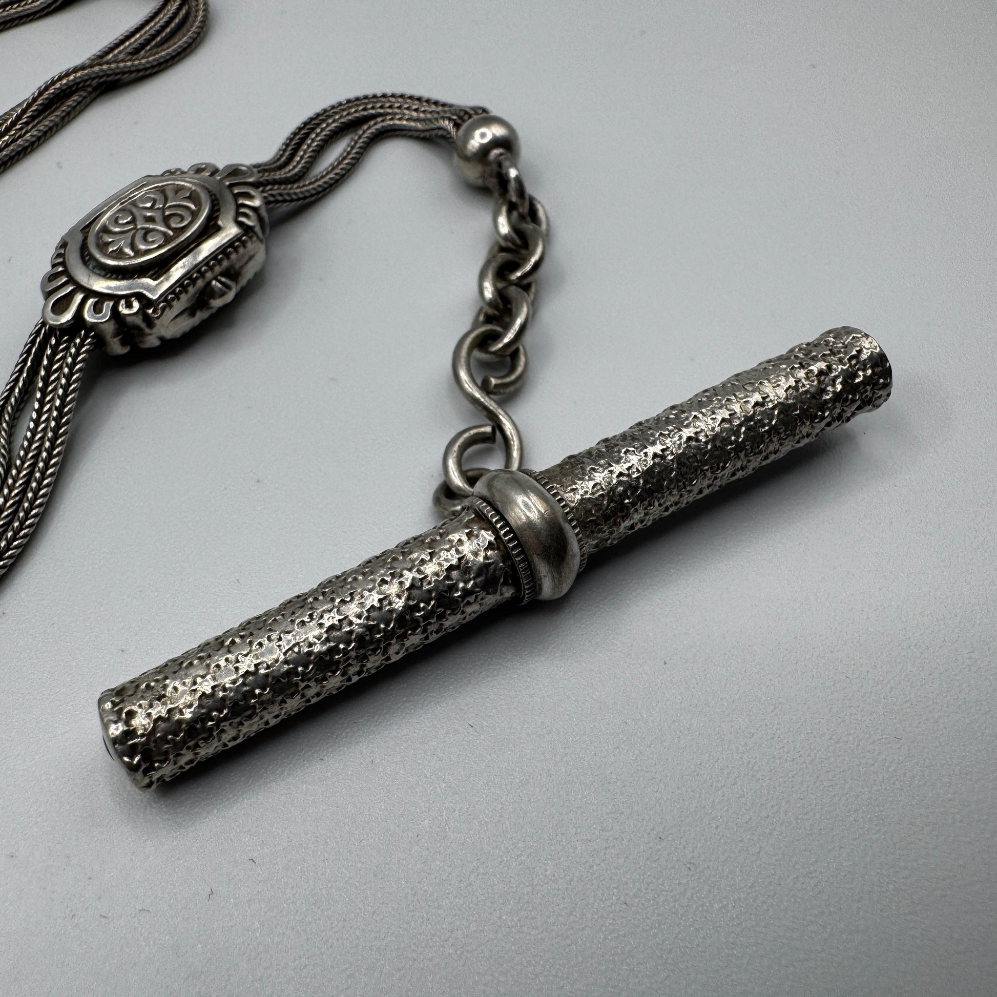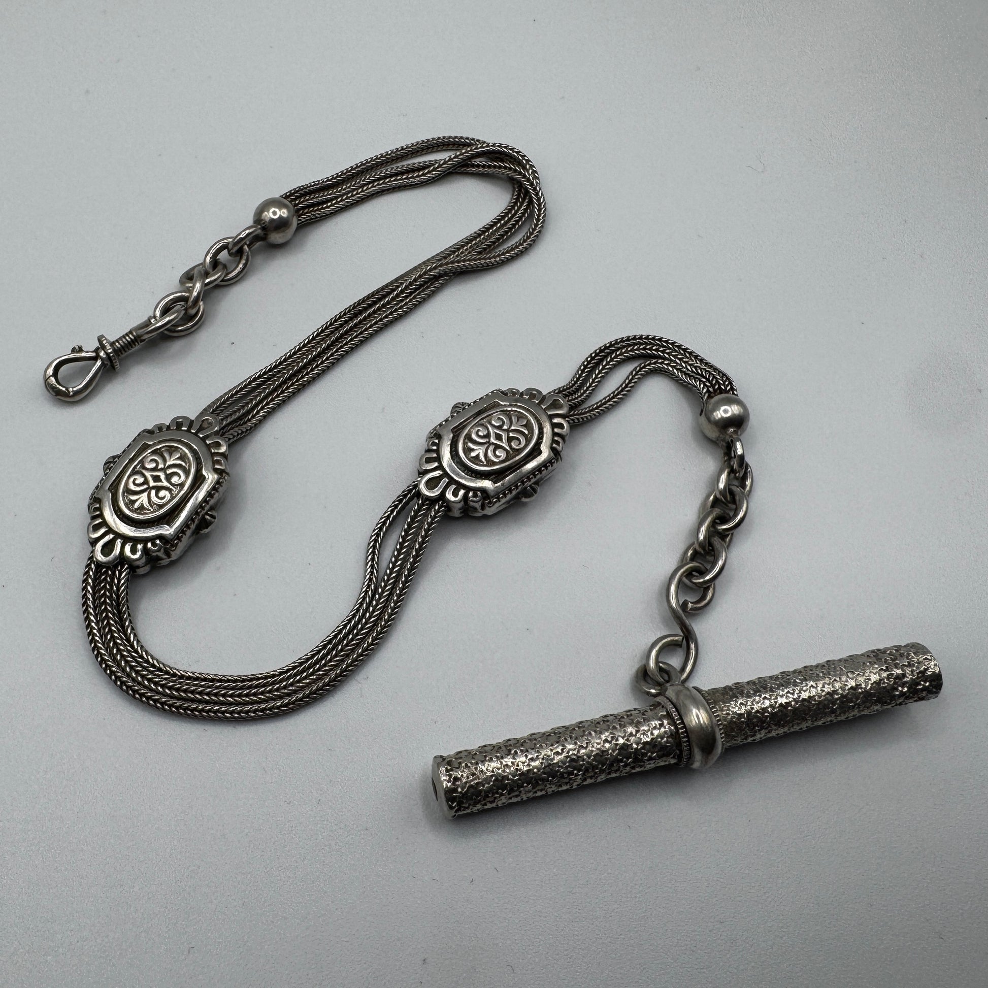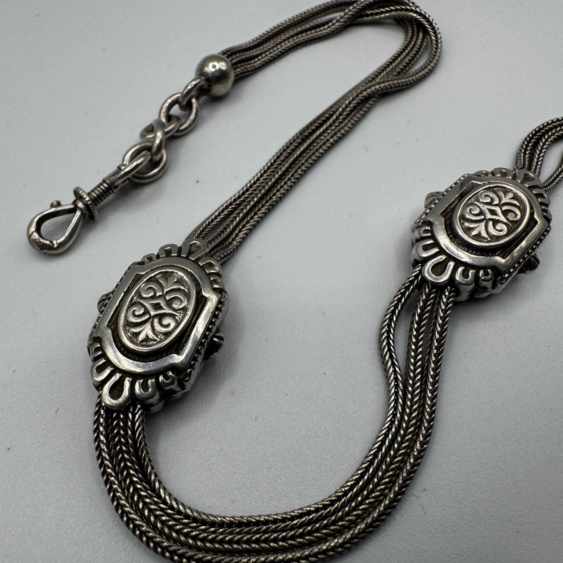 Cette châtelaine été autrefois portée à la ceinture pour y suspendre une montre à gousset. Aujourd'hui, elle peut être utilisée comme bijou de collection ou accessoire de mode vintage.