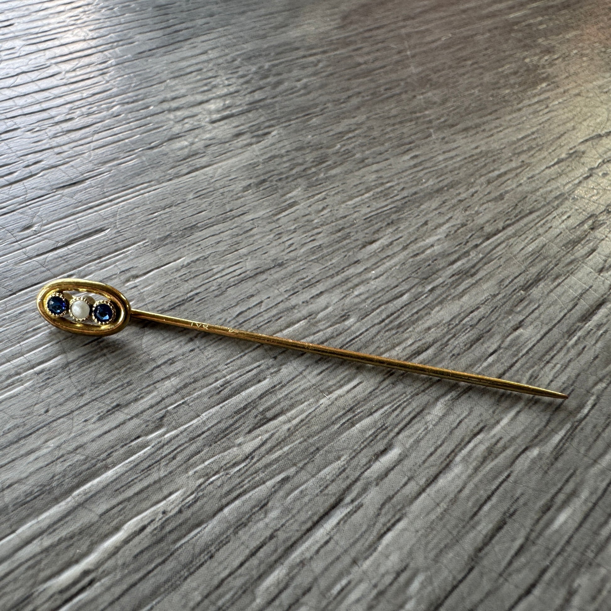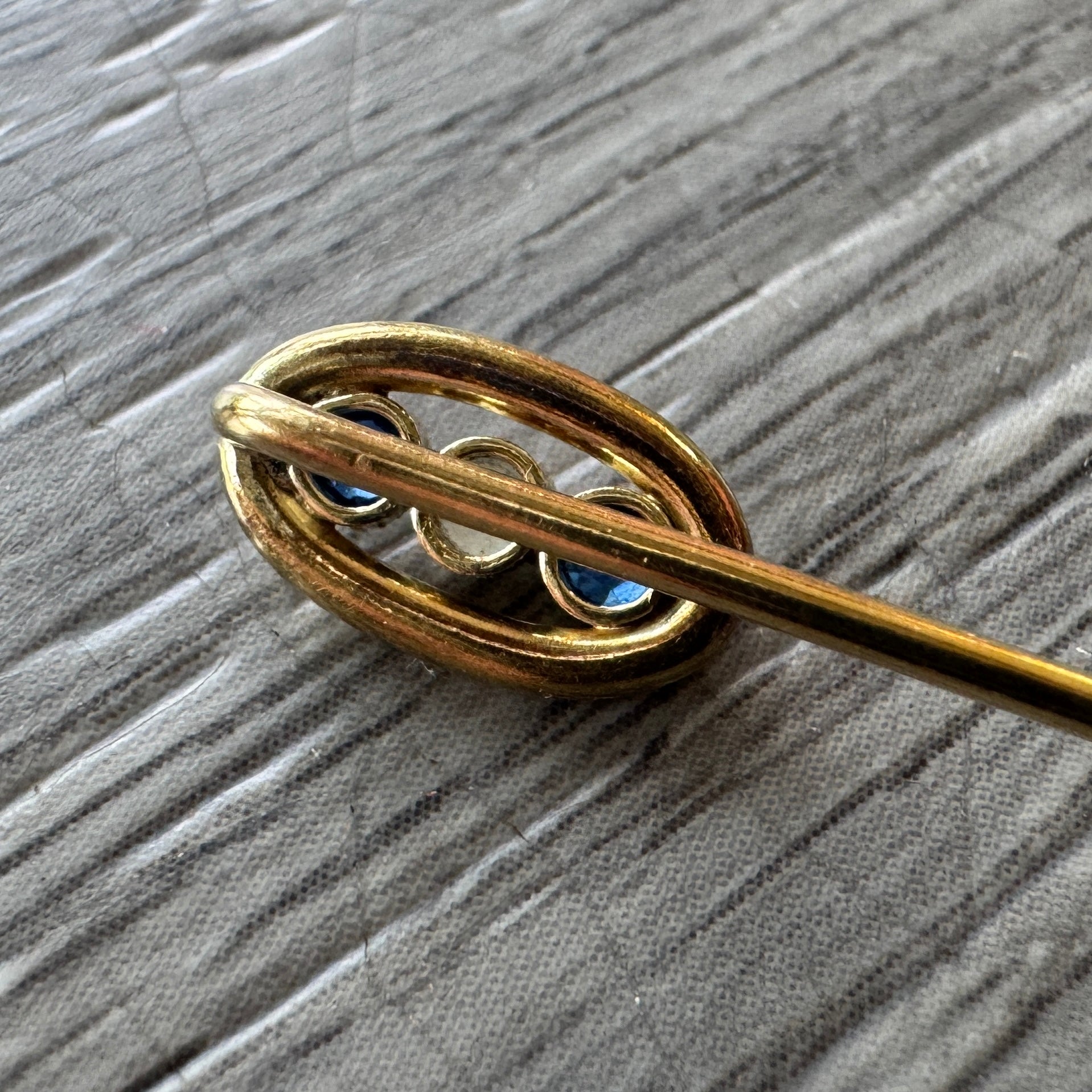 Épingle à cravate ancienne - plaqué or- orné de pierres bleues et perle