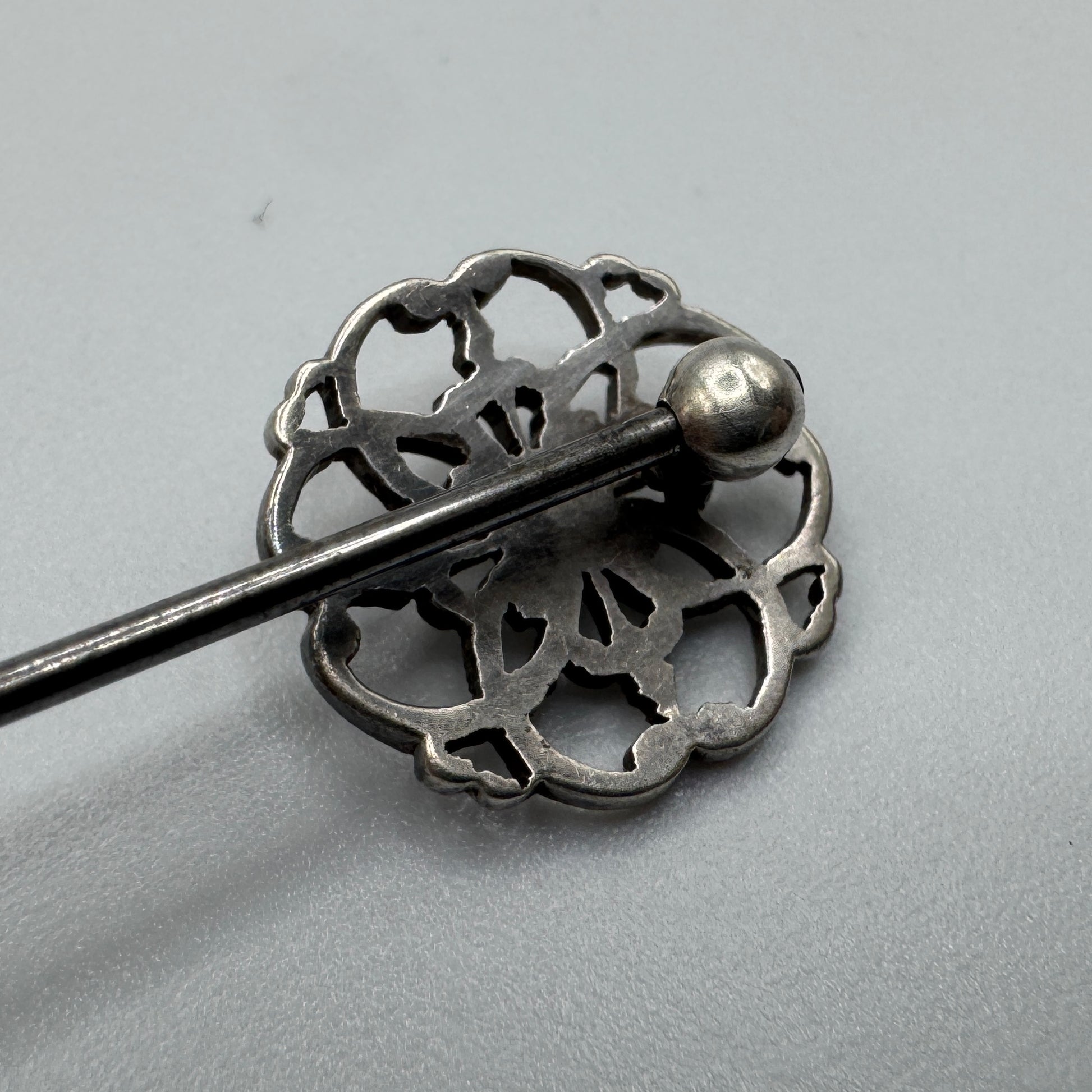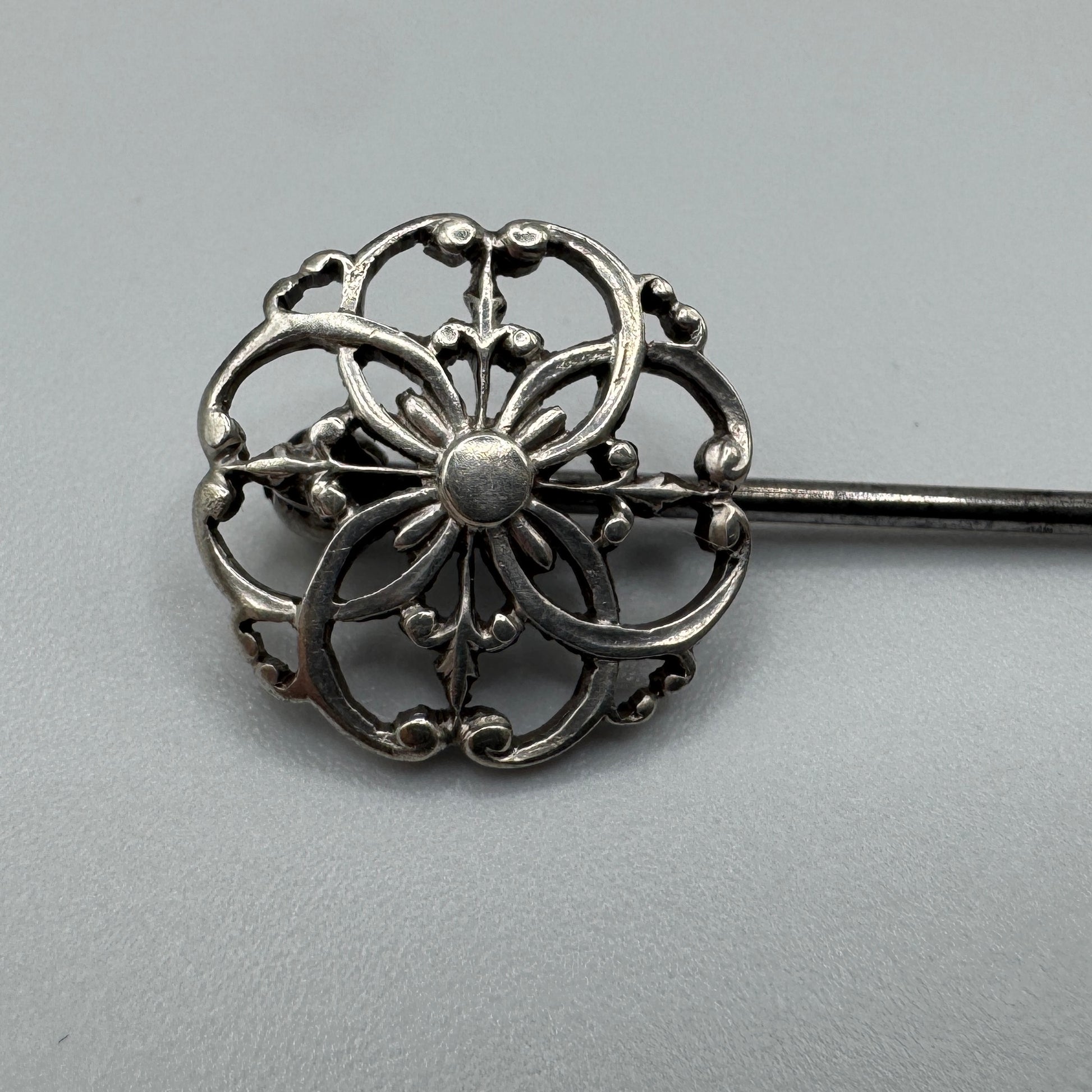 Épingle à cravate ancienne vers 1900 - argent massif et acier