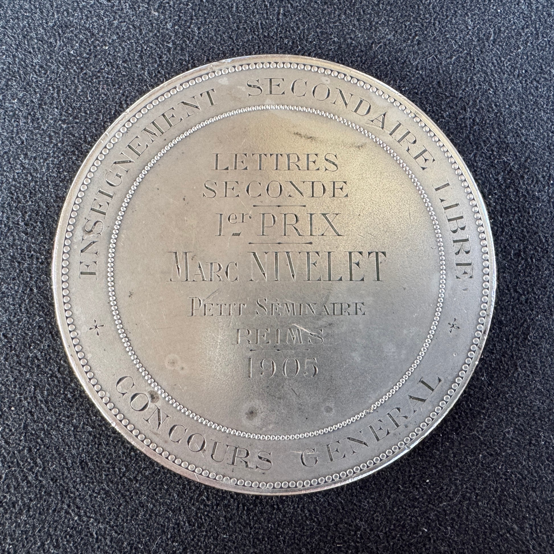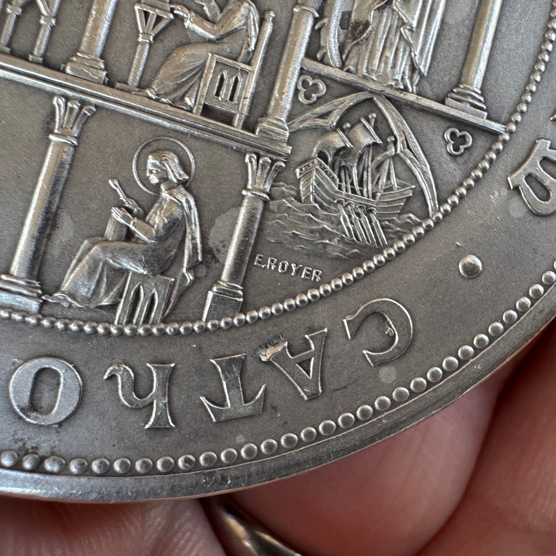 Médaille ancienne en bronze argenté « Institution catholique de Paris 1905 » par Royer