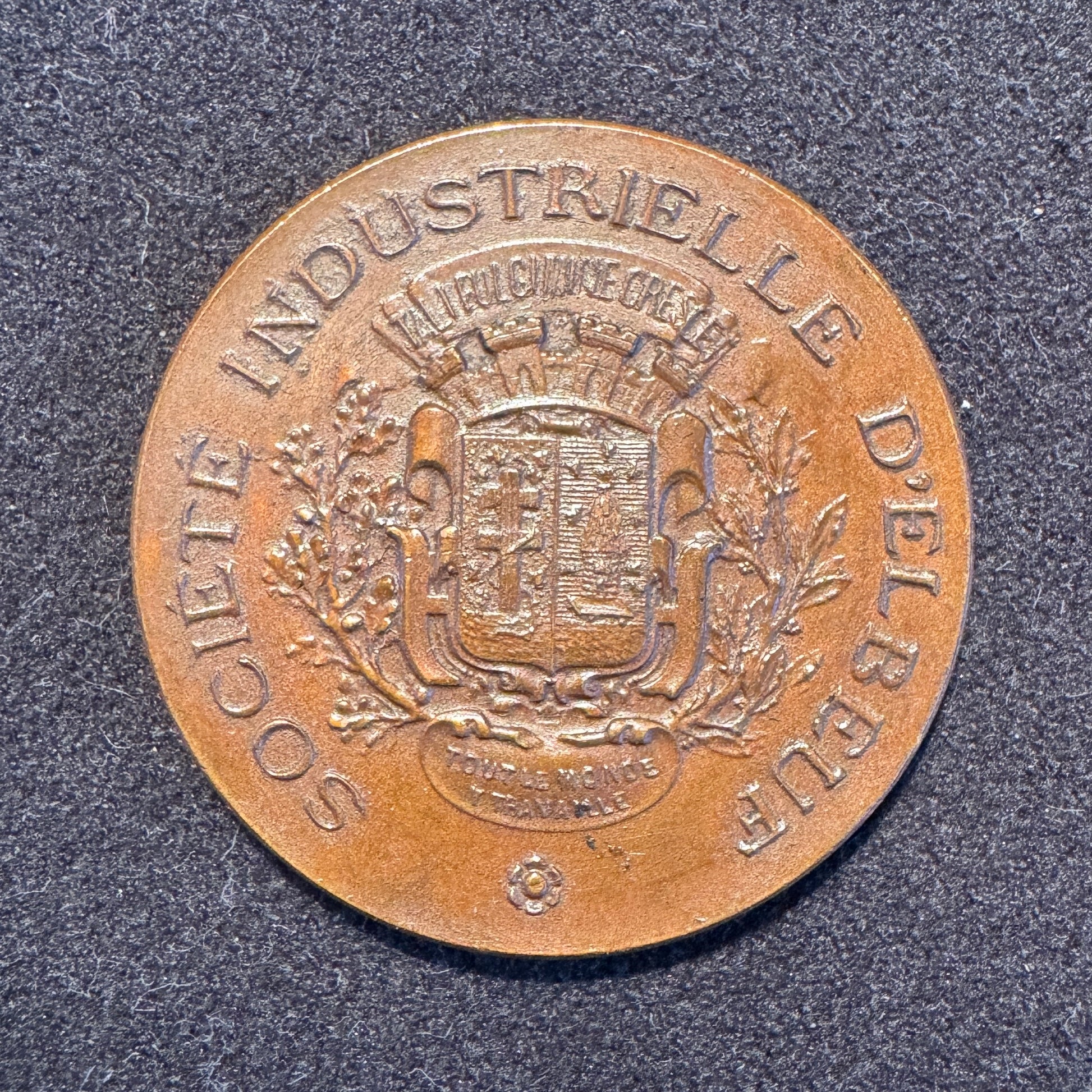 Médaille honorifique décernée par la société Industrielle d'Elbeuf, une organisation liée au développement industriel et économique de cette ville située en Normandie.