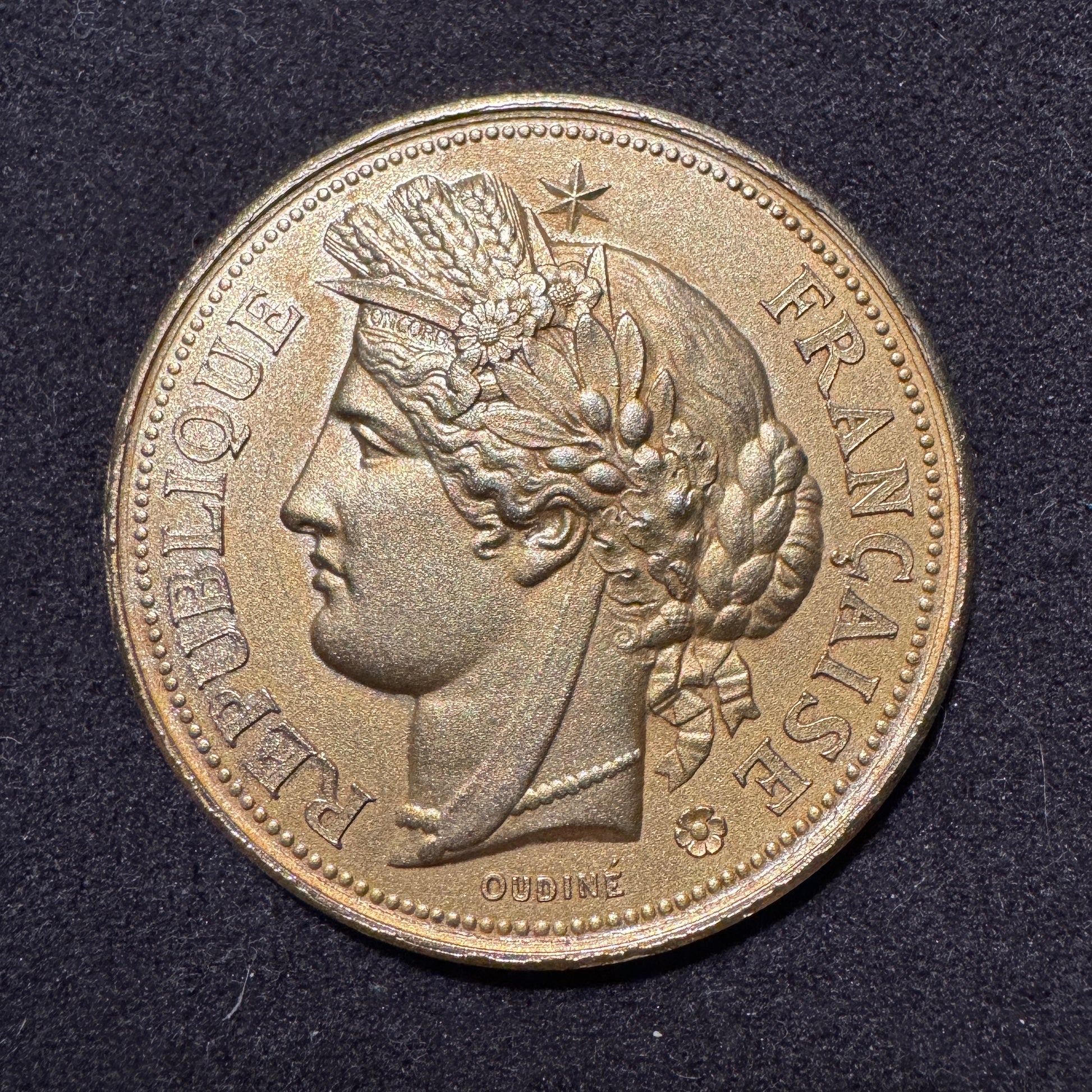 Cette médaille est une oeuvre du graveur et médailleur Eugène André Oudiné, reconnu pour ses nombreuses réalisations pour la monnaie de Paris et ses contributions aux pièces et médailles officielles de la République française.