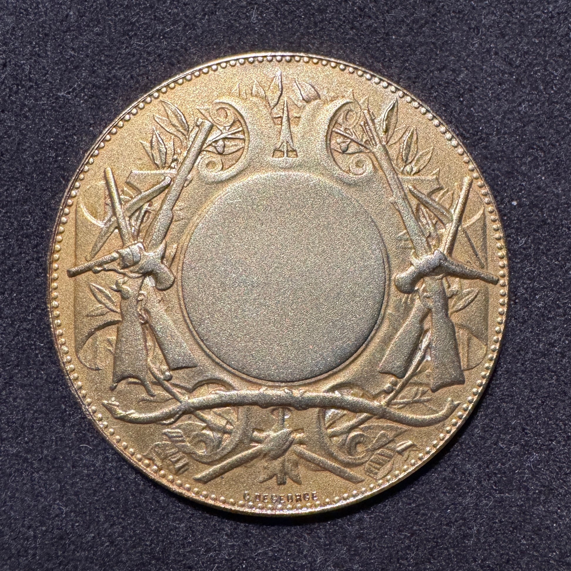 Cette médaille reprend des motifs fréquents sous la IIIe république, période durant laquelle la France valorisait les idéaux républicains et militaires à travers de nombreuses médailles et distinctions.