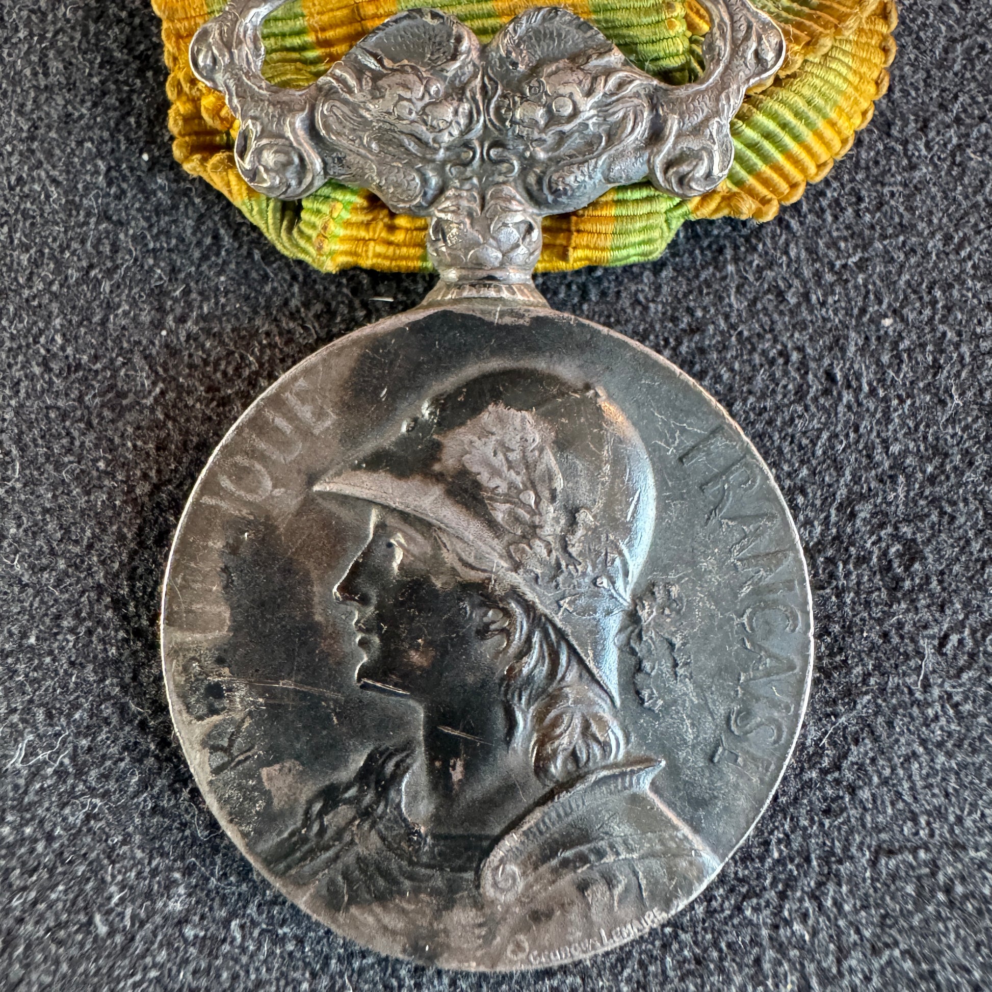 Superbe médaille coloniale française, attribuée aux soldats et marins ayant participé à l'expédition internationale en Chine en 1900, notamment lors de la répression de la révolte des Boxers.