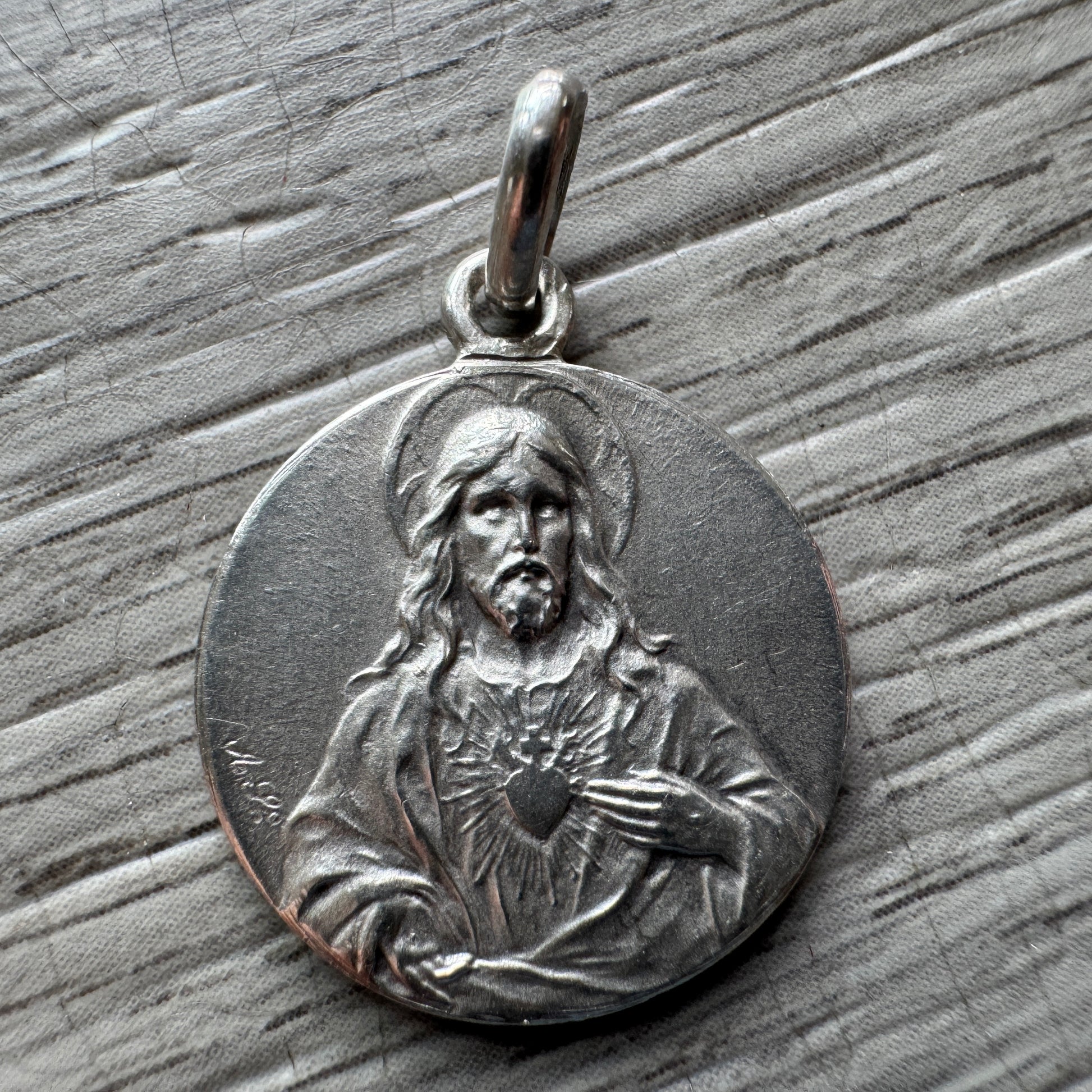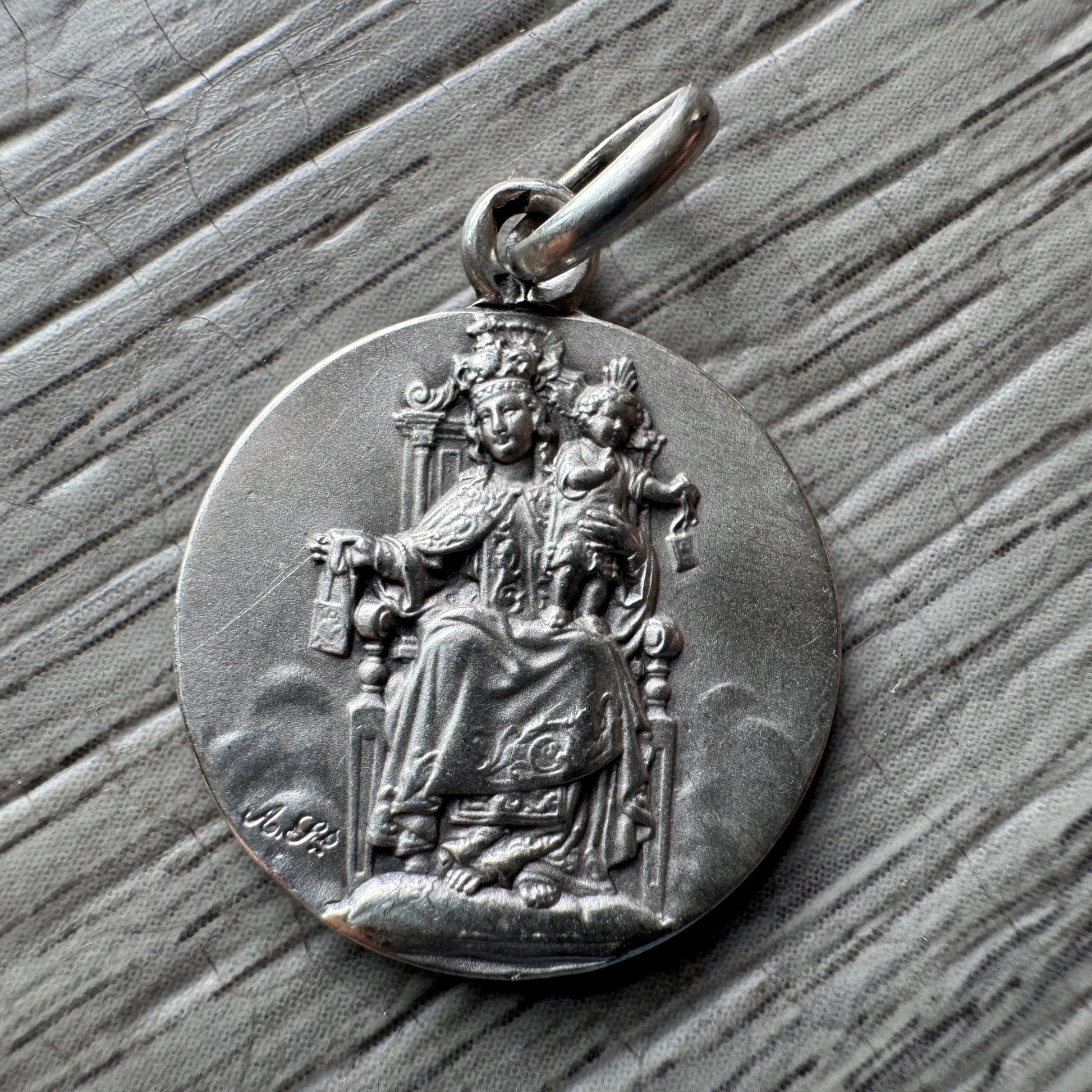 Médaille religieuse ancienne en argent - scapulaire de la vierge Marie