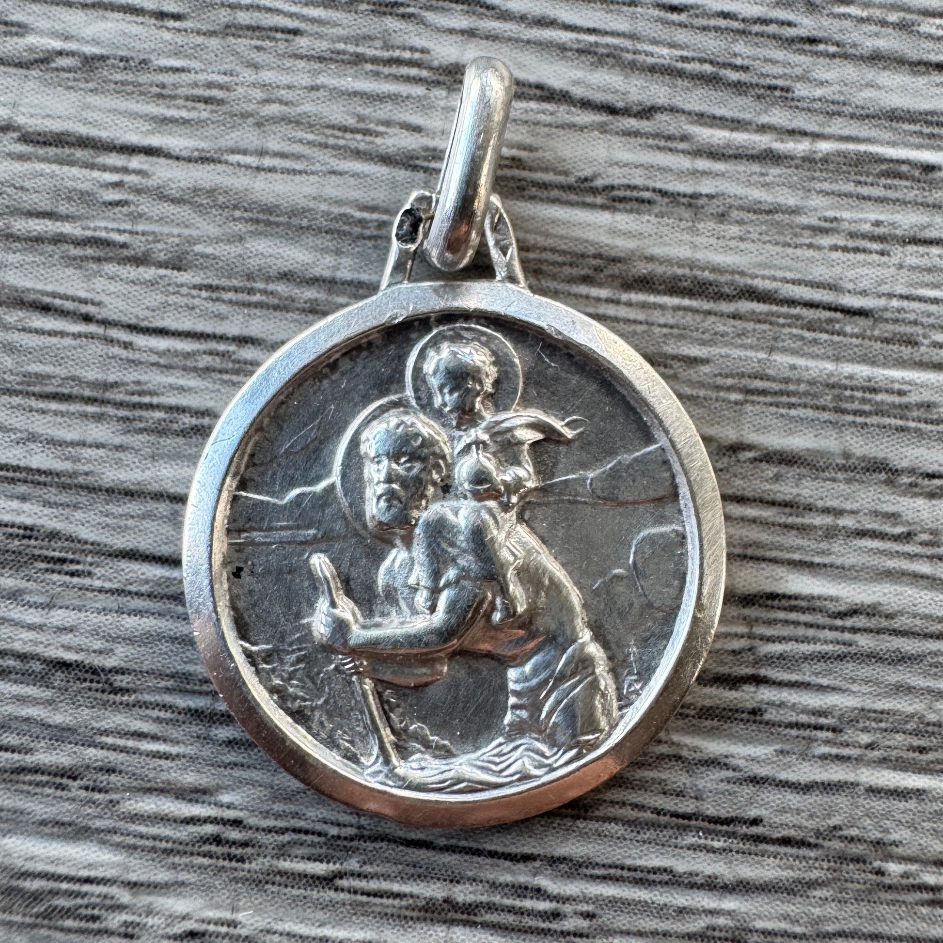 Médaille religieuse ancienne en argent « Saint Christophe »