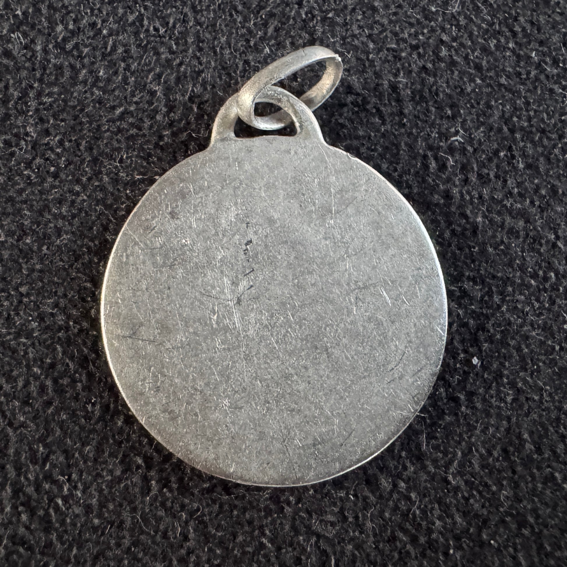 Cette médaille en argent massif arbore le Chrisme, ancien symbole chrétien formé par la superposition des lettres grecques X (chi) et P (rho), les deux premières lettres du mot "Christos" en grec. On retrouve également les lettres alpha et oméga, représentant le début et la fin, conformément à l'Apocalypse: " Je suis l'alpha et l'Oméga, le commencement et la fin."