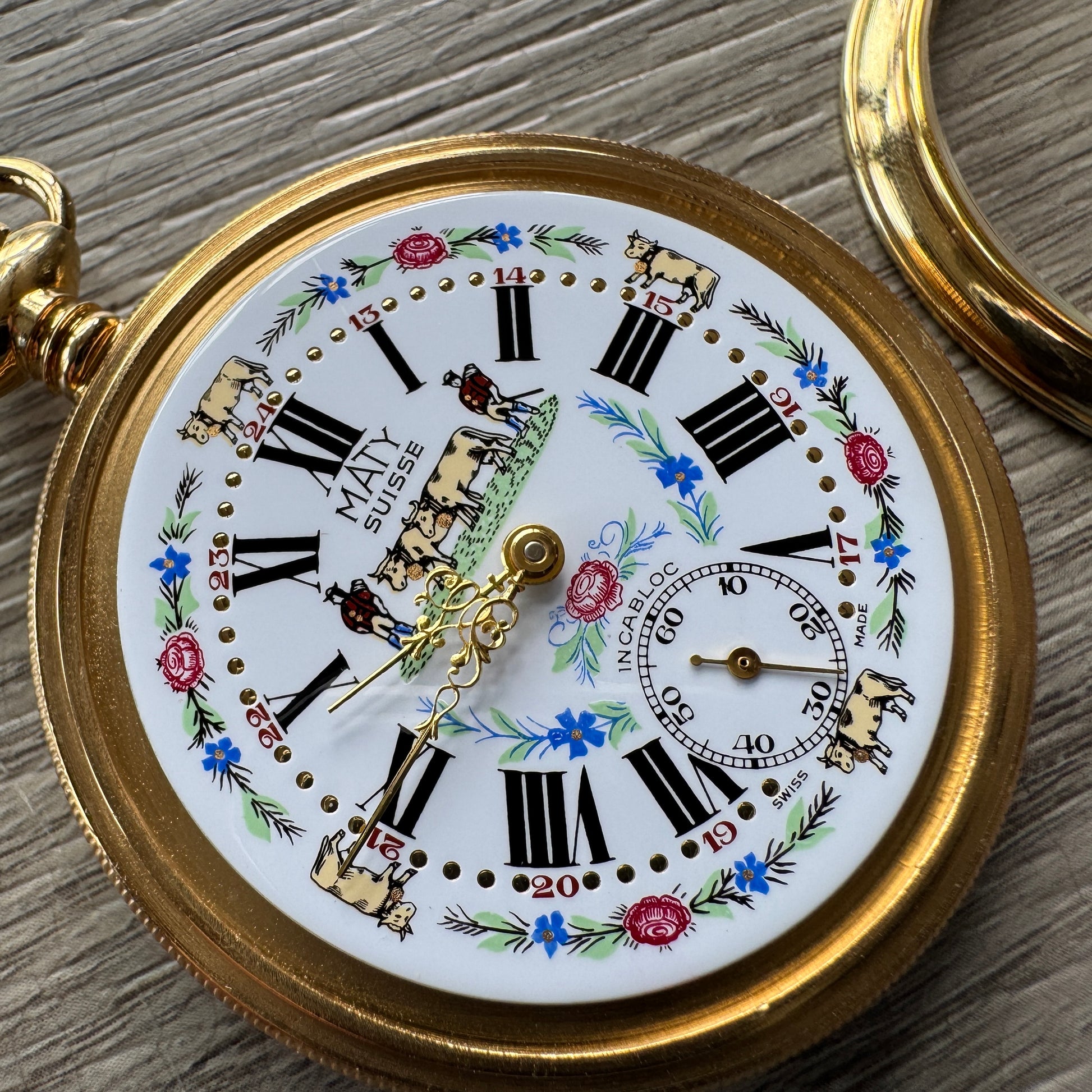 Superbe montre à gousset MATY Suisse « décor vaches »