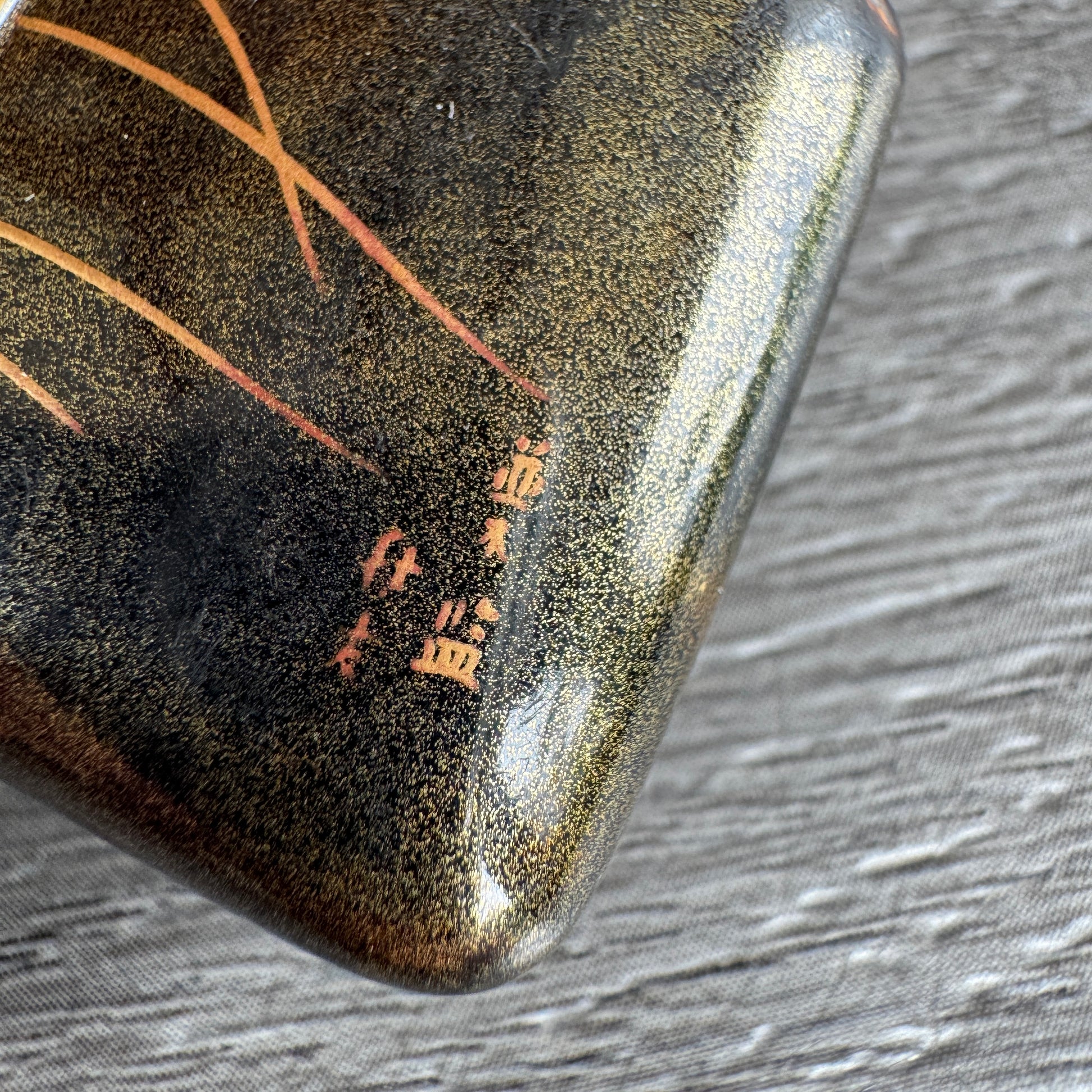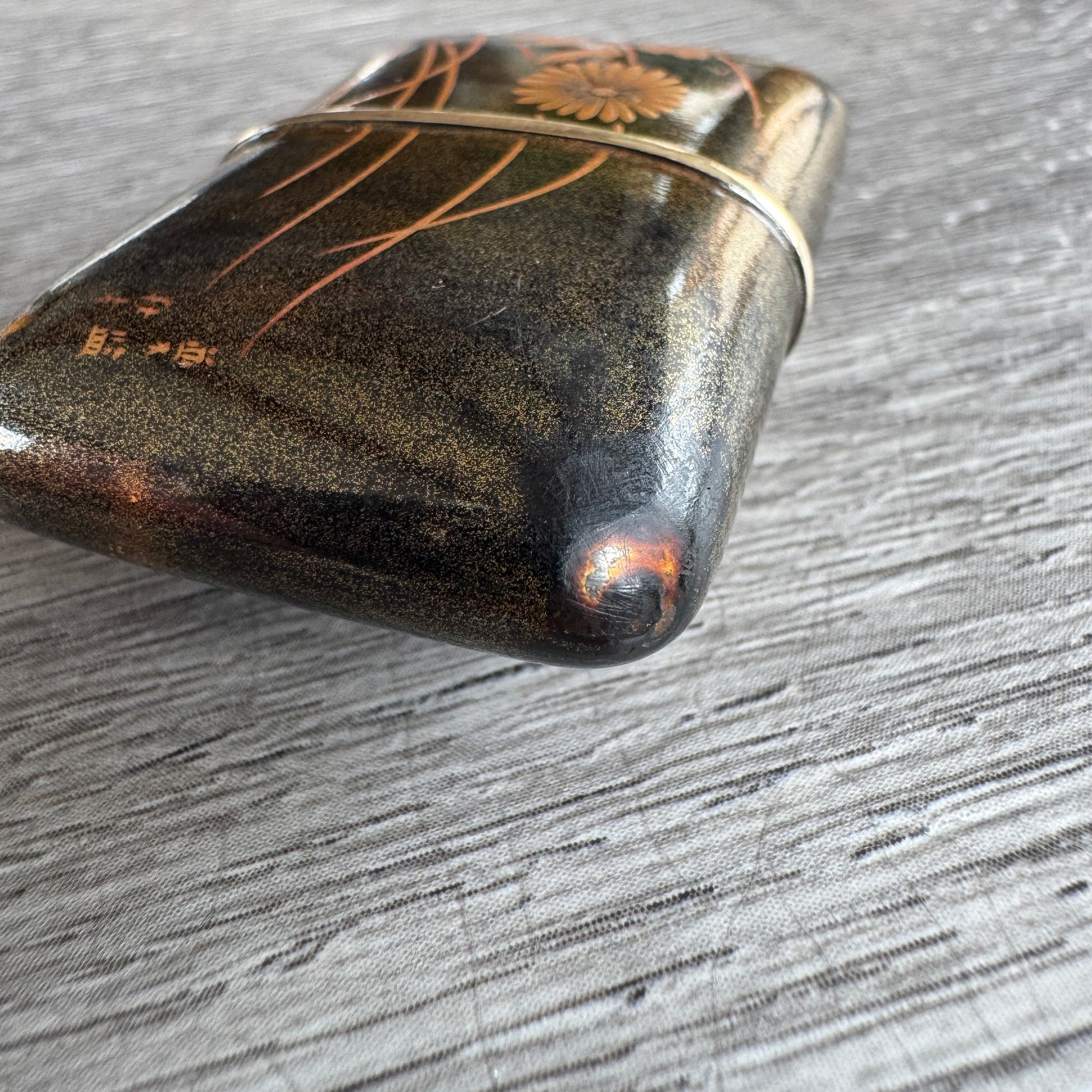 la laque Maki-e est en très bon état, signature du maître laqueur bien visible, usure de la laque dans un coin.