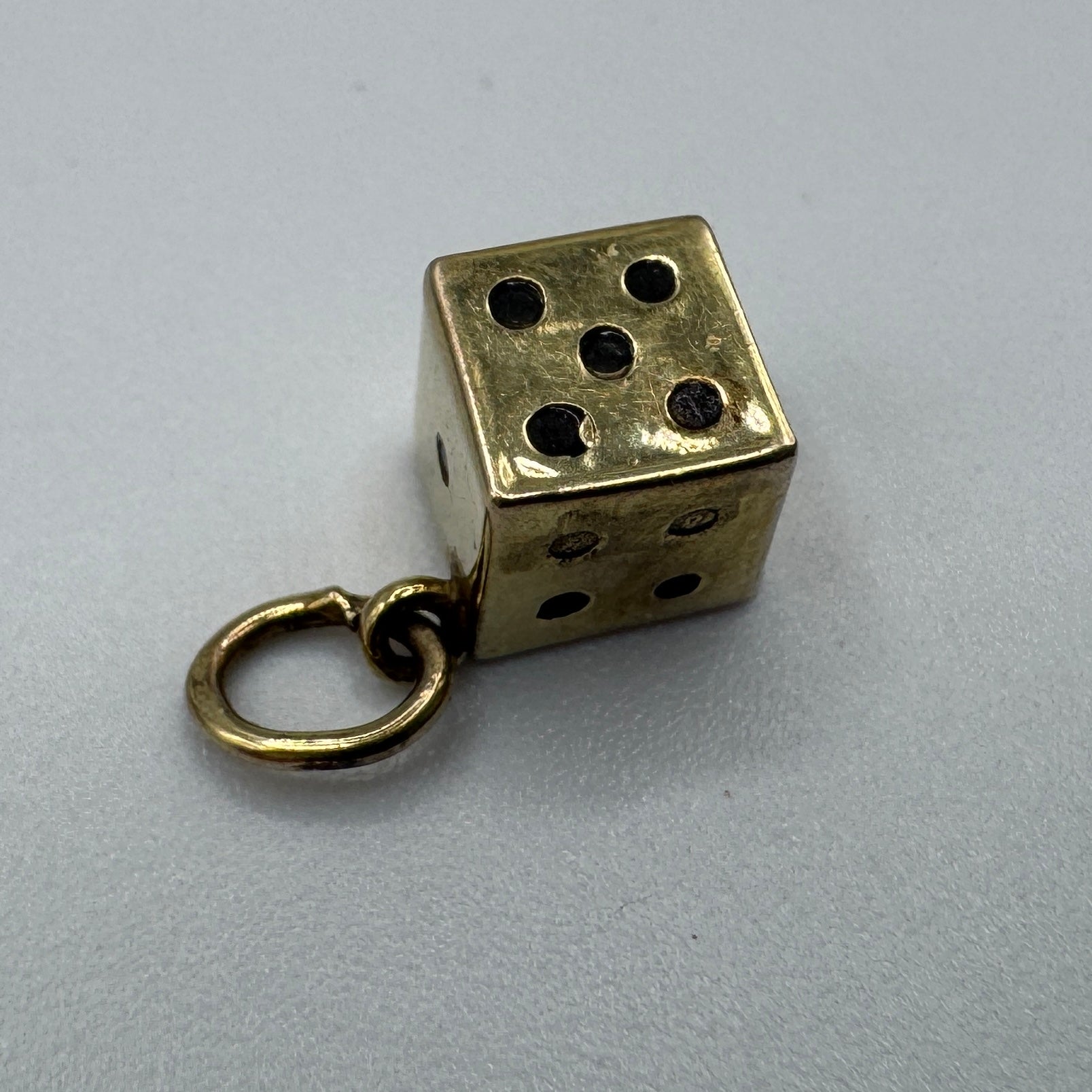 Petit pendentif ancien porte bonheur « dé à jouer » - or 333/1000