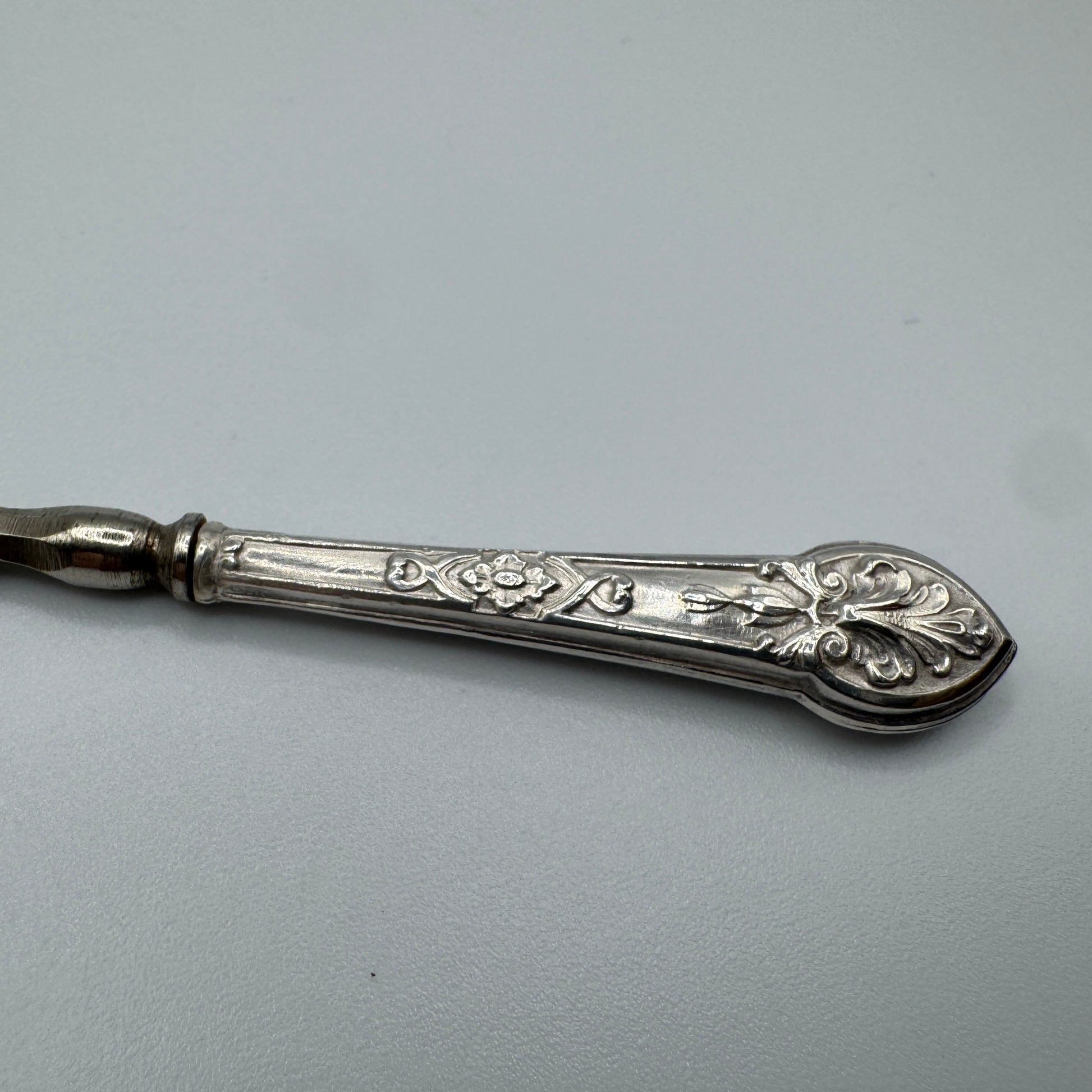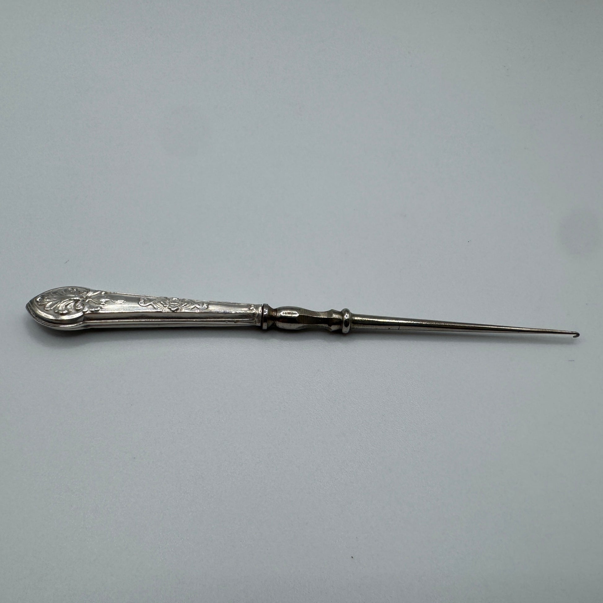 Petit crochet de couture ancien - argent fourré et acier