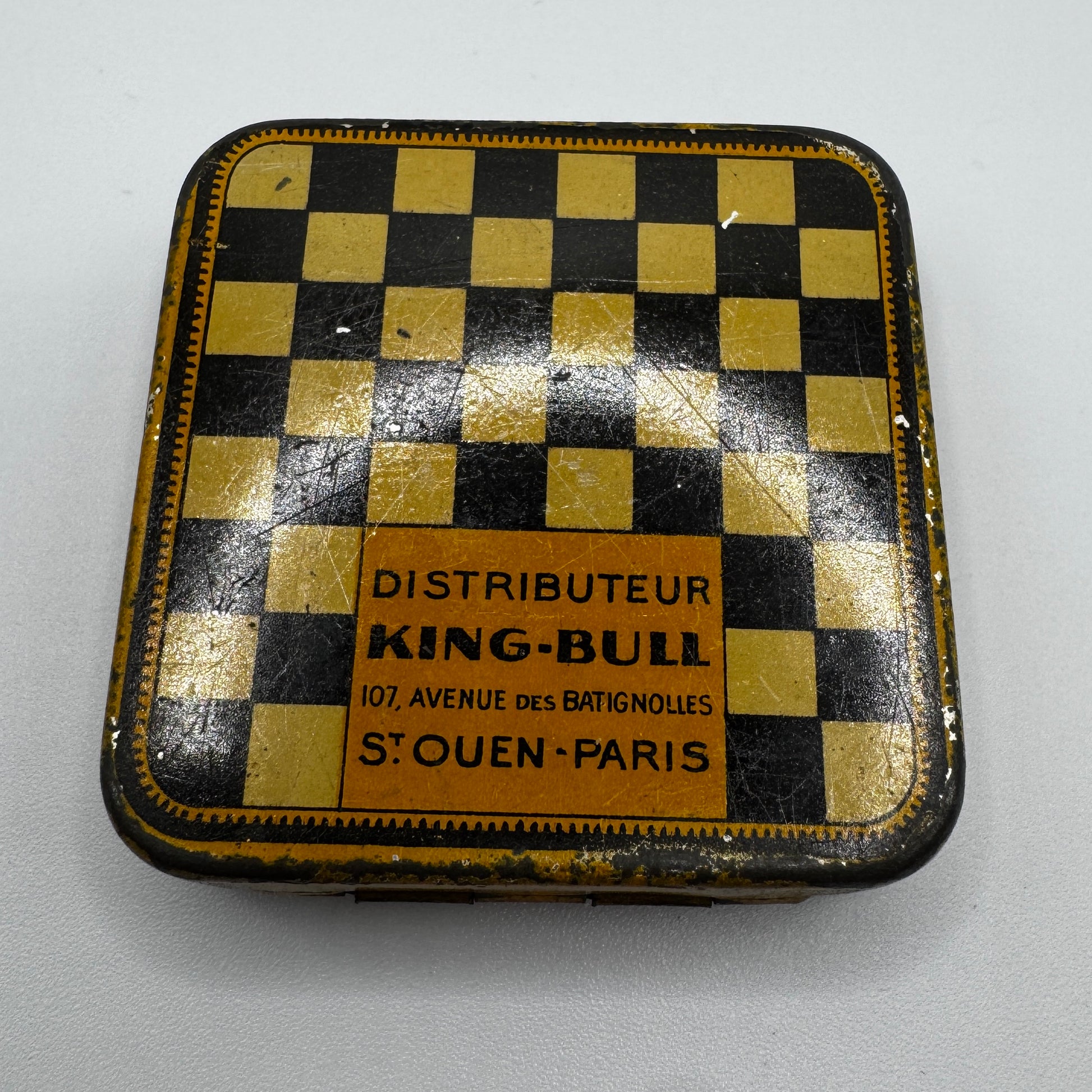Petite boîte ancienne publicitaire en tôle lithographiée - « bonbons Domino »