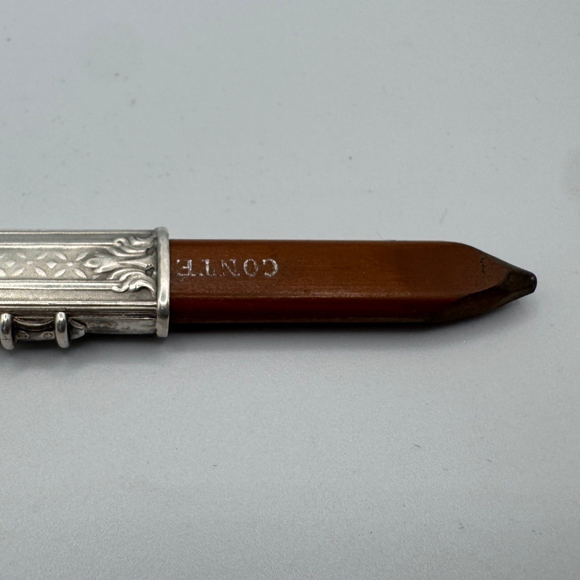 Son décor délicatement gravé de volutes et feuillages stylisés évoque les créations de l'art Nouveau. Il renferme encore son crayon d'origine.