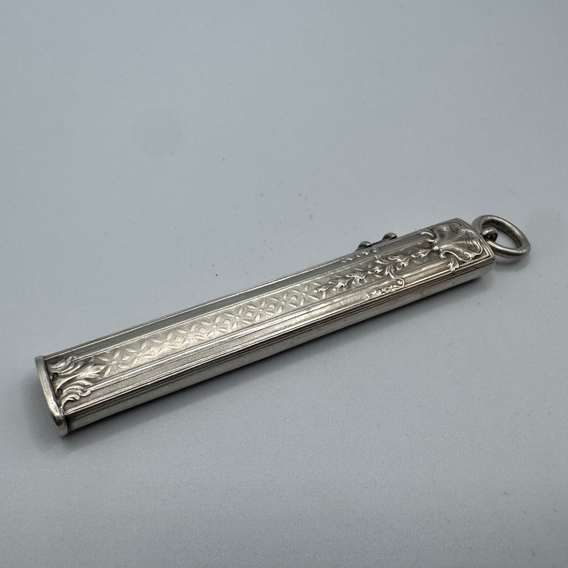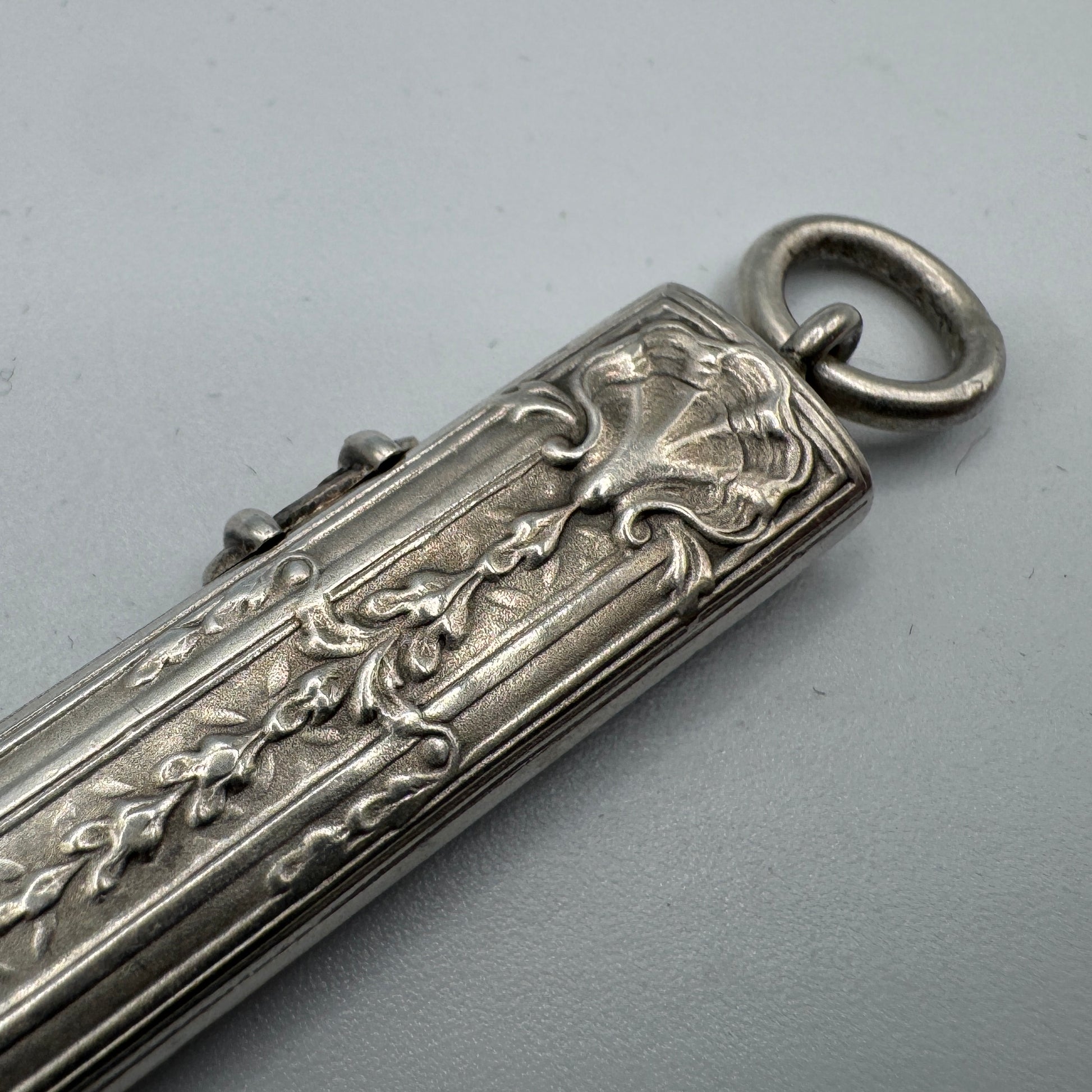 Raffiné et plein de charme, ce porte- crayon ancien en argent massif ciselé incarne à merveille le goût du détail de la Belle Epoque.